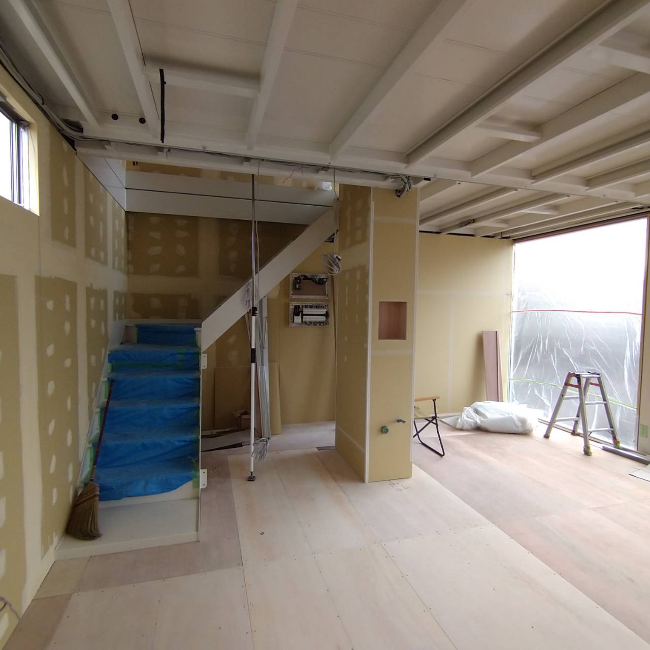 休みもなく毎日軽量工事からボード貼りまで仕上げ、何とか形が見えてきました。