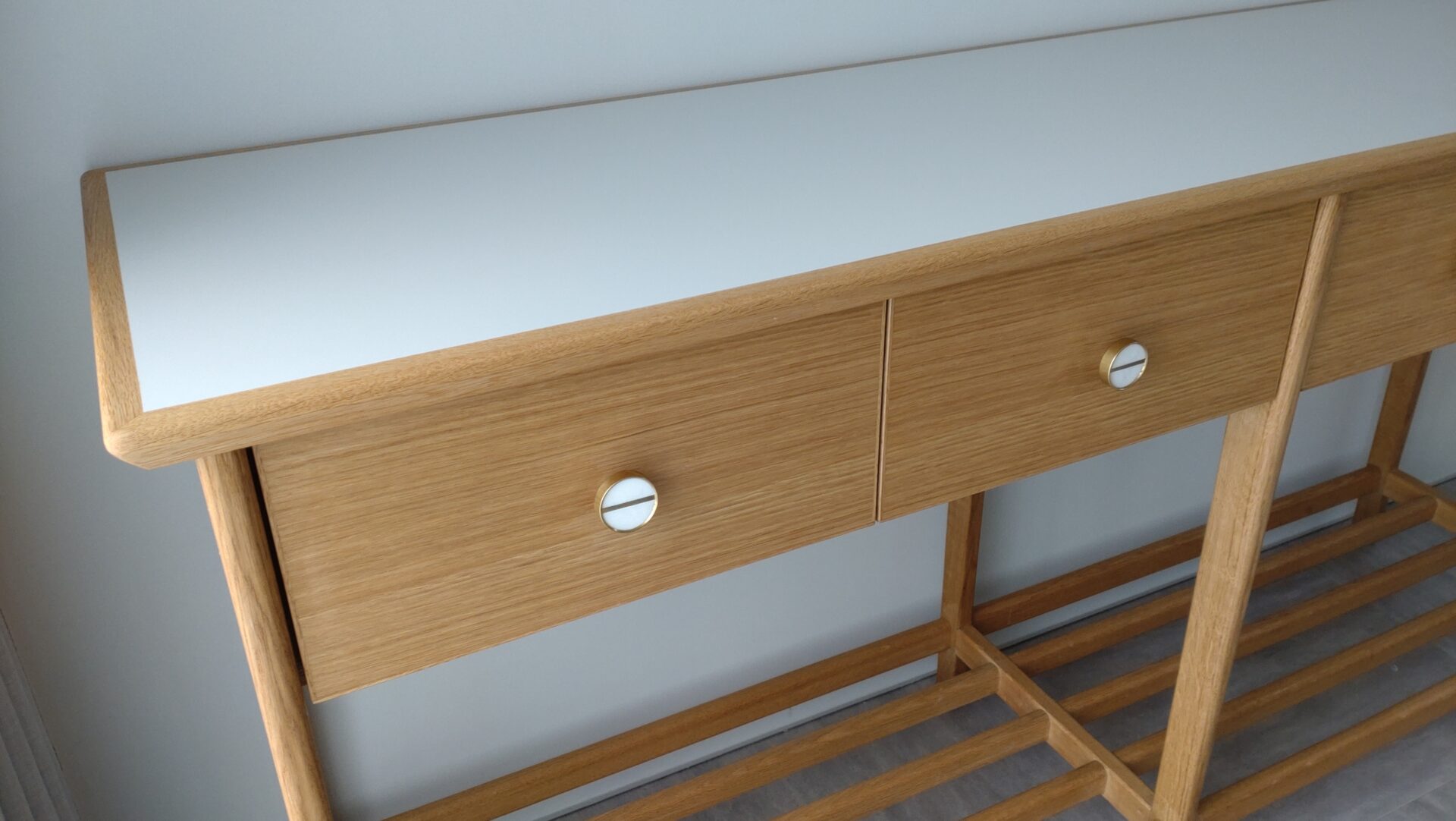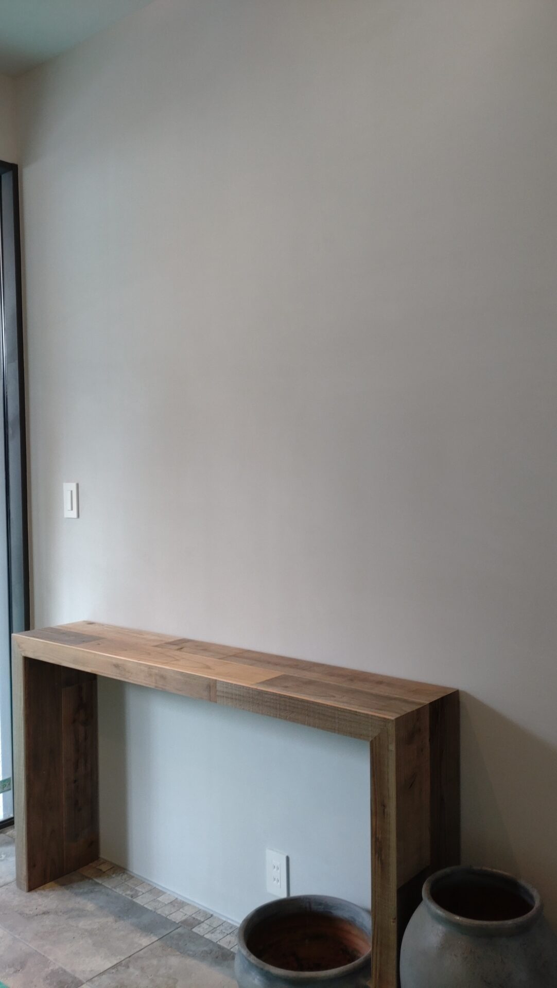 エントランスのコンソールテーブルは他と違った雰囲気の古材で製作。