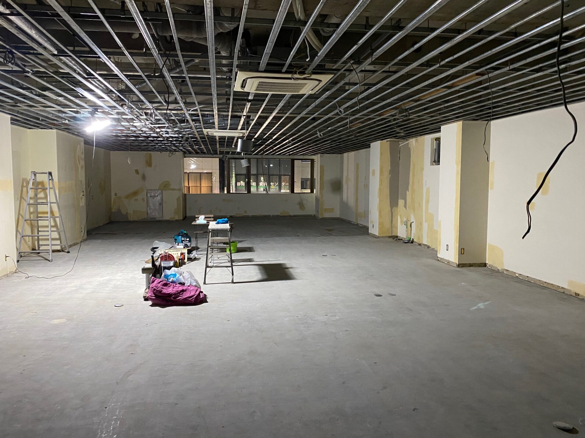 床はコンクリートを削ったままで、天井は軽天のままにしたりと