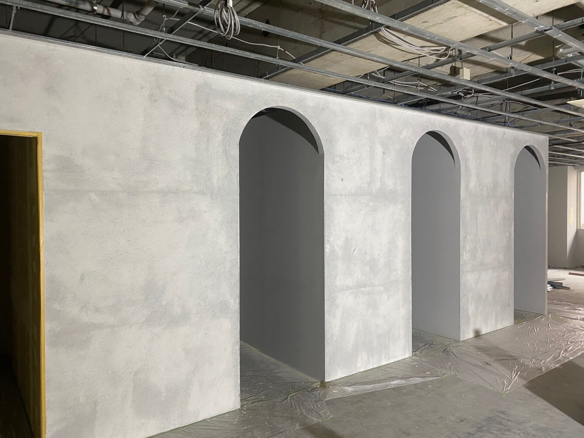 壁はモルタル仕上げとエイジング塗装仕上げにしているので