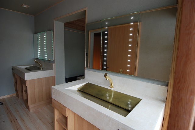 各棟に洗面台・テーブル・座椅子・ベッド・デスク・イージーチェアなど製作し、収めました。
