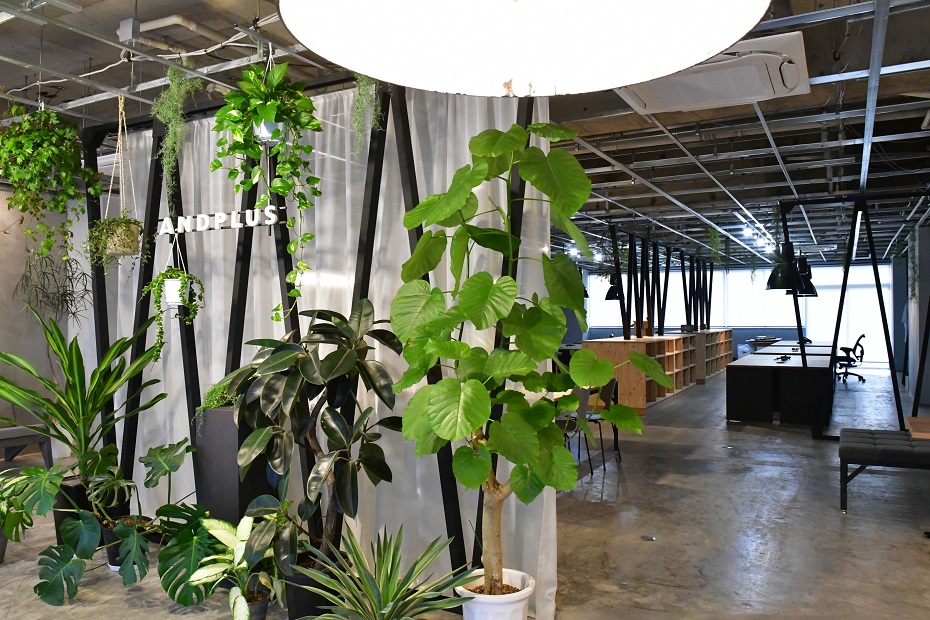 又、インドアグリーンも無機質な空間に心地よさを感じさせます。