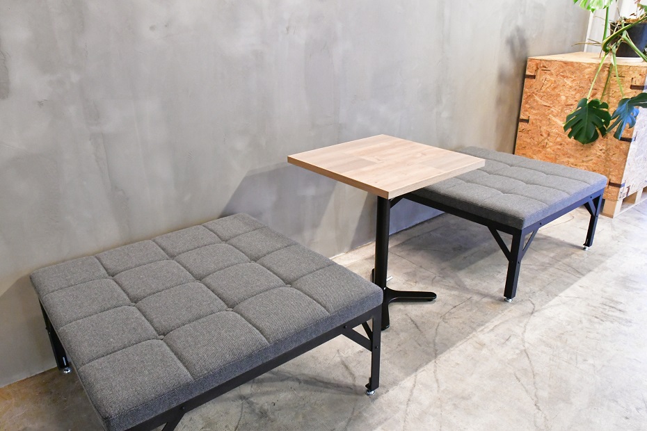 サイドには少しの時間お待ちいただくお客様用に低めのベンチをセッティング。