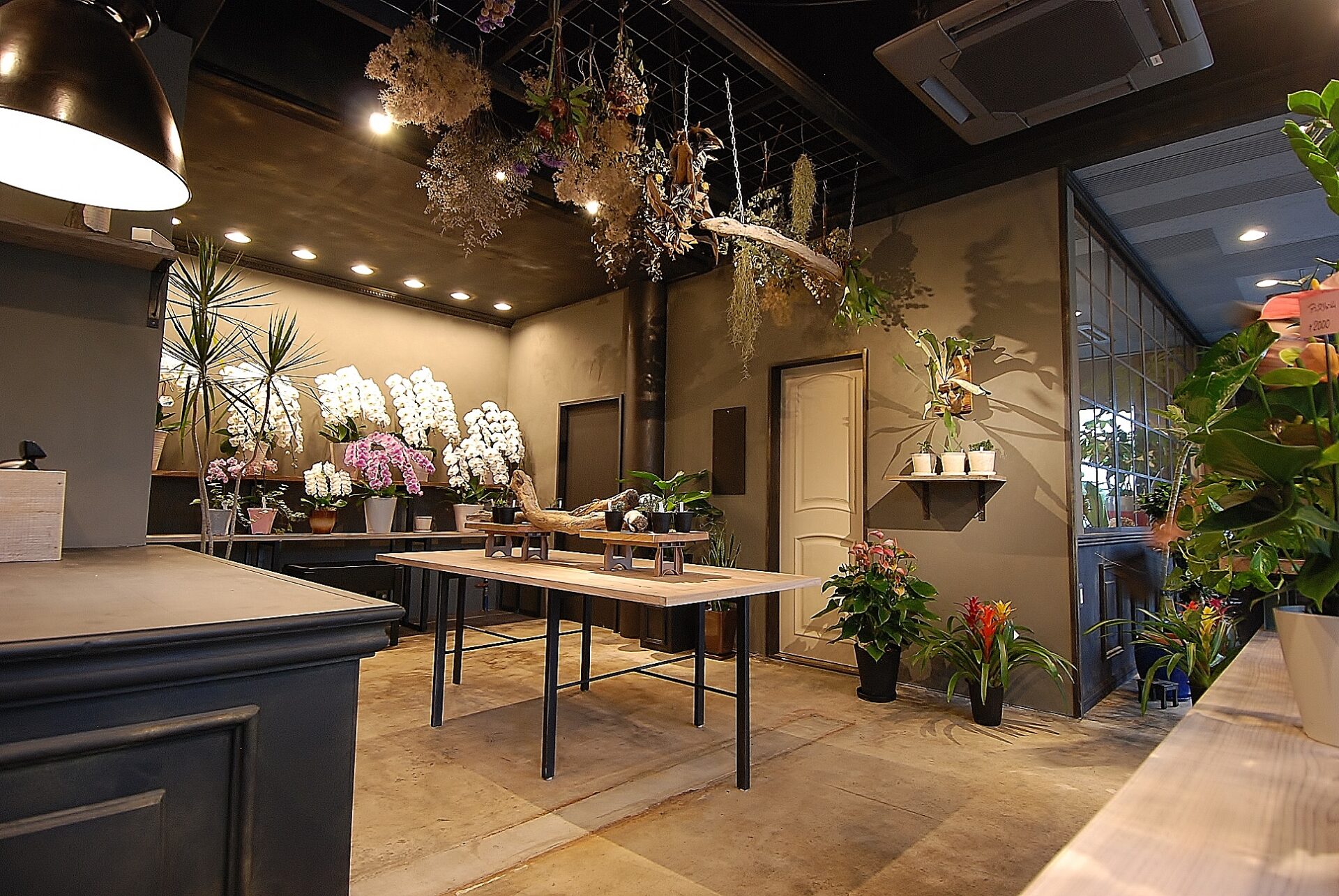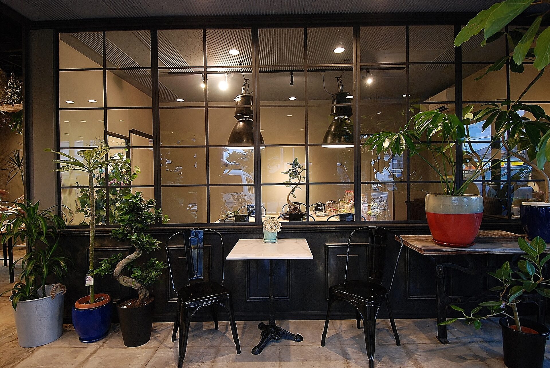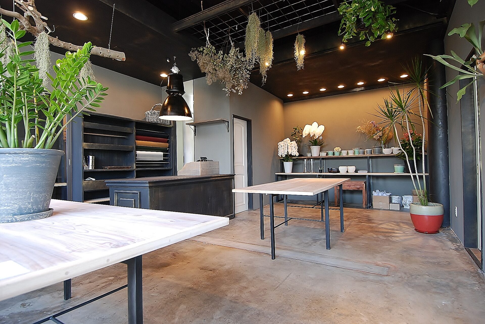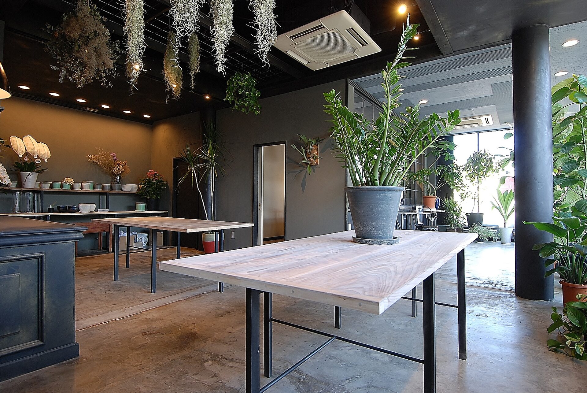 販売スペースの入口には座ってお茶ができるスペースを設けました。