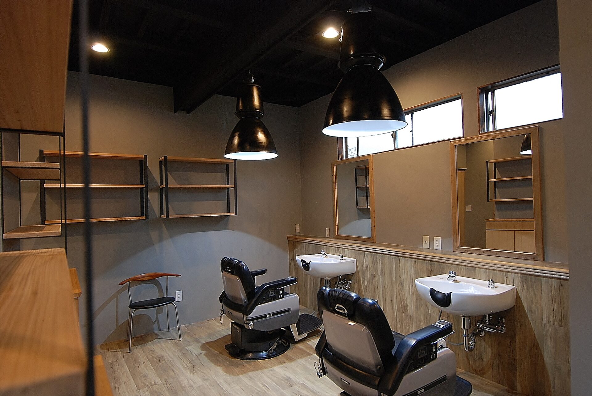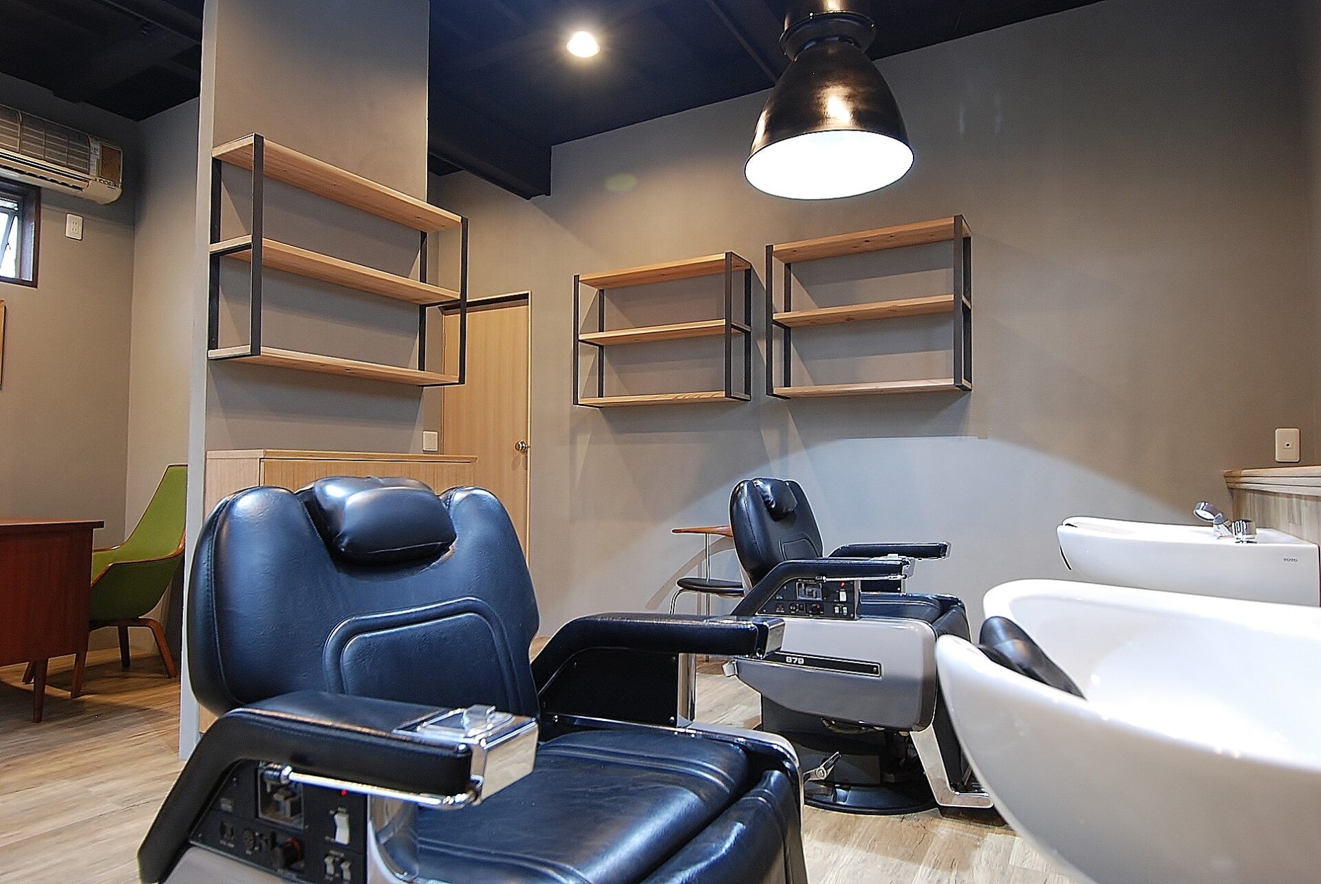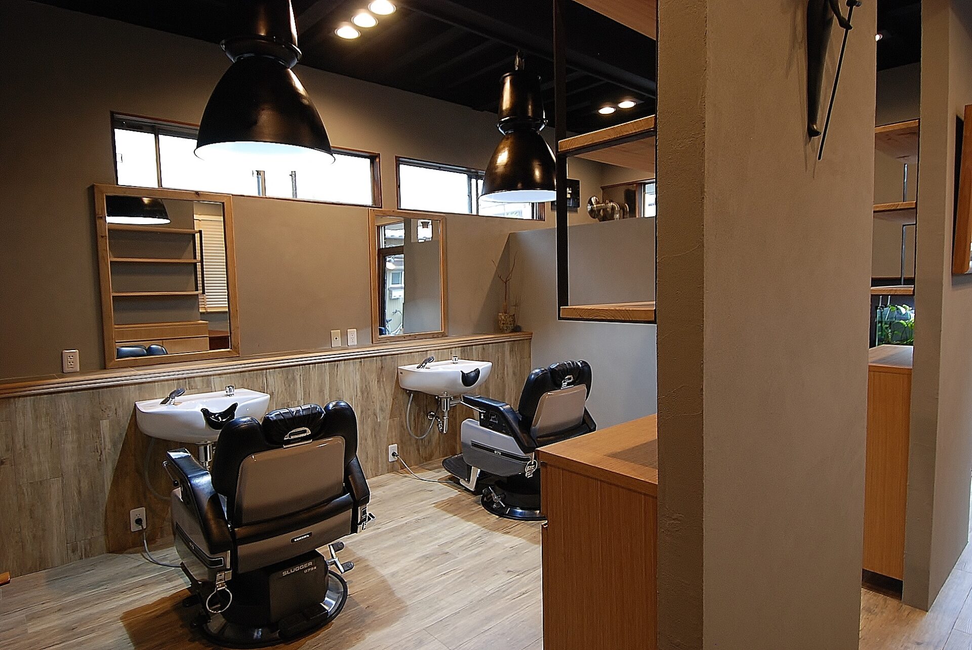 カットスペースと待合の間仕切りに壁を新設。