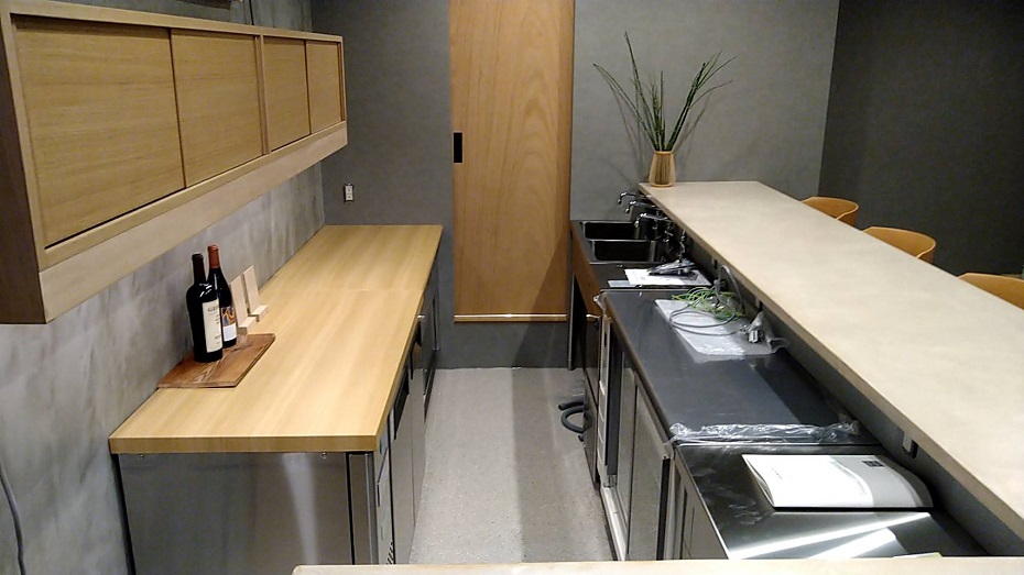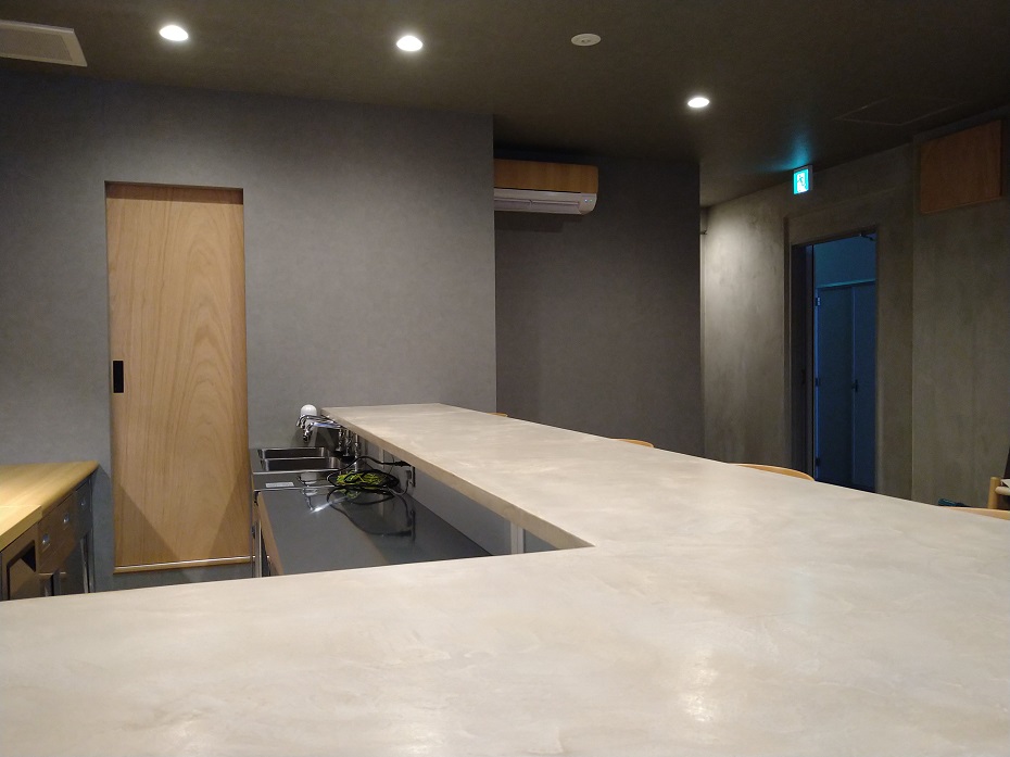 カウンターの天板はベージュ系のモールテックスで仕上げました。