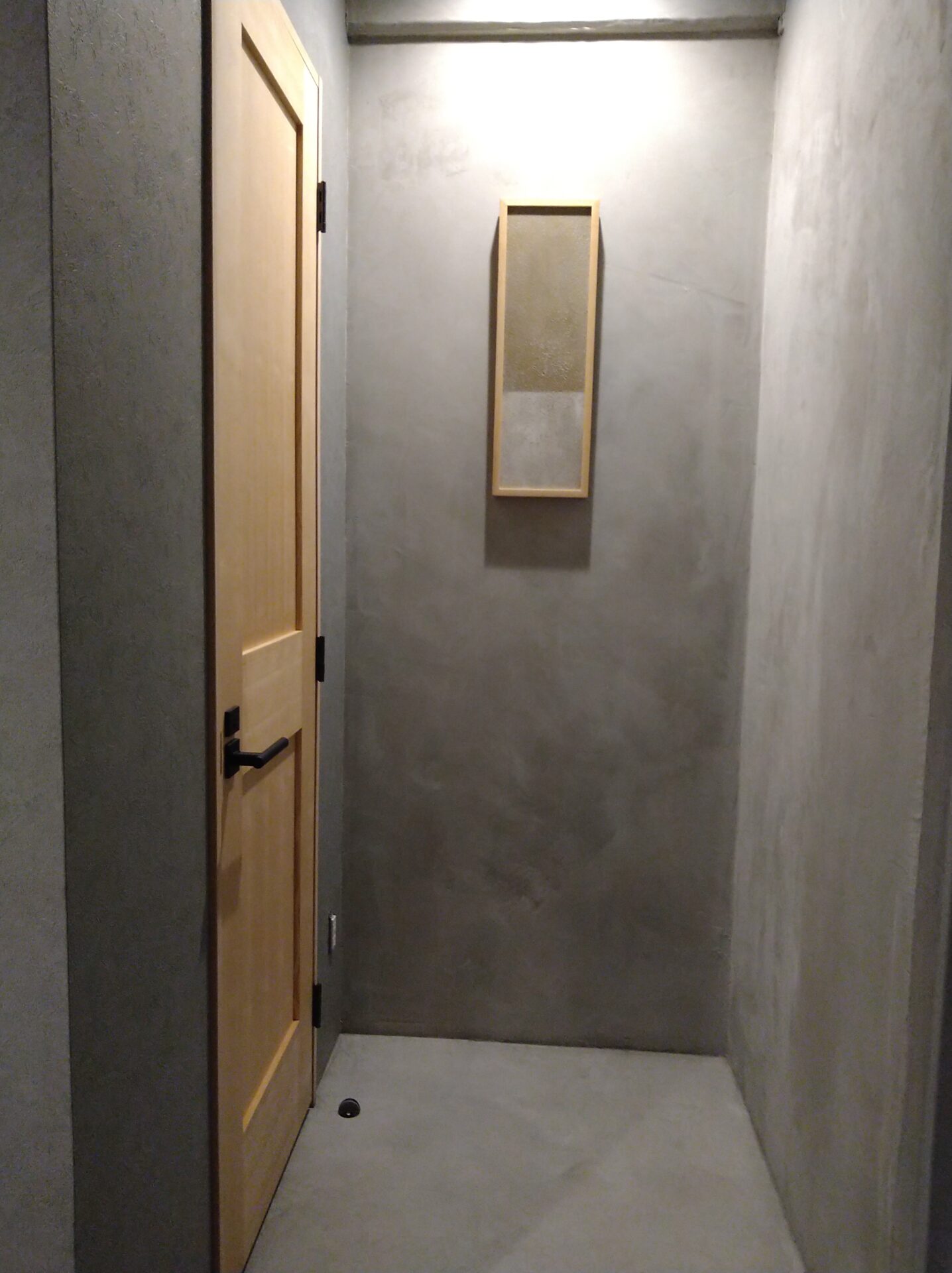 モルタルの壁とナチュラルな色合いの木部。